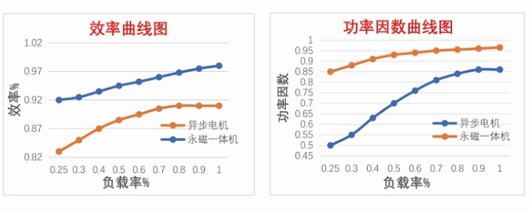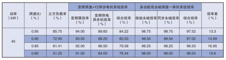 下表為與平方轉矩系統45kW-4(Y2系列異步電機使用變頻供電)同工況效率對比